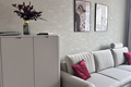 Просторная гостиная с мягкой мебелью (раскладной диван, комод, тумба, торшер)